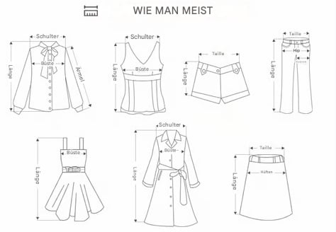 Mithilfe dieser Tabelle können Sie die Größe von Oberteilen. Overalls und Kleidern ermitteln.