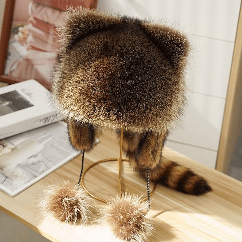 🔥Handgefertigte Mütze aus Waschbärpelzimitat