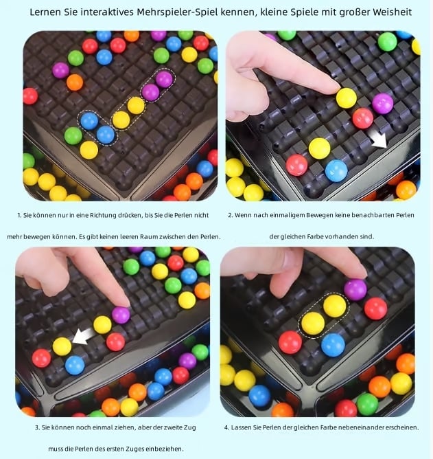 - Die Spieler schieben Schachfiguren. um 2 oder mehr Schachfiguren derselben Farbe zu erreichen. und sammeln diese dann ein.