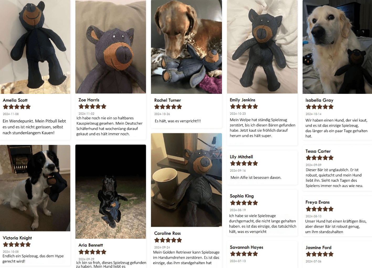 „Ich habe es so satt. alle paar Tage neue Spielzeuge zu kaufen. Der Unbreaka-Bear hält bei meinem Rottweiler. einem echten Power-Kauer. perfekt durch.“