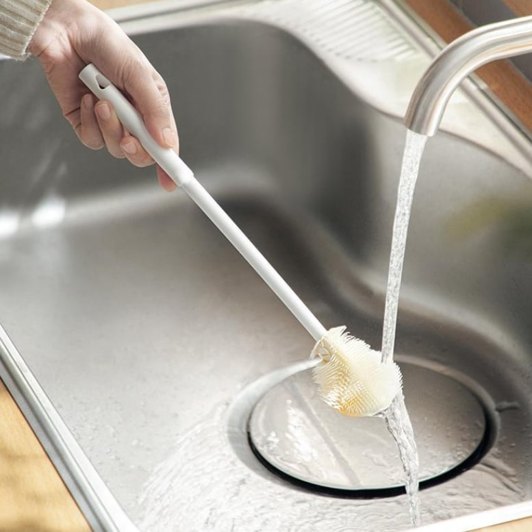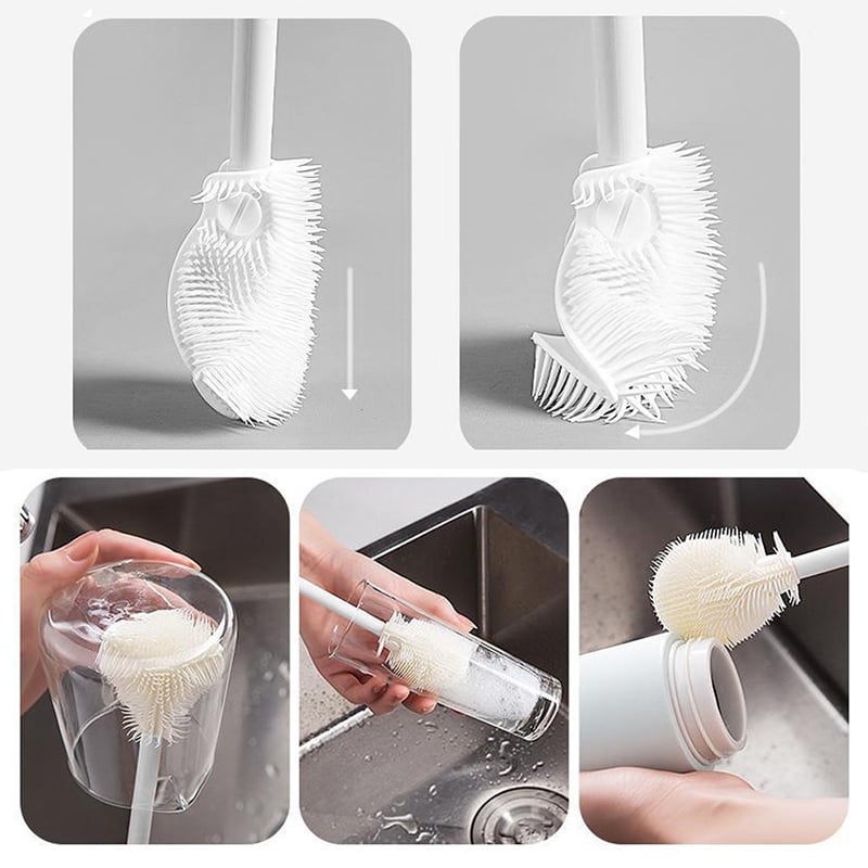 Die verlängerte Becherbürste kann bis zum Boden des Bechers reichen und zum Reinigen um 360° gedreht werden. Außerdem kann die Flasche bis zum Ende gebürstet werden. egal wie tief sie ist.