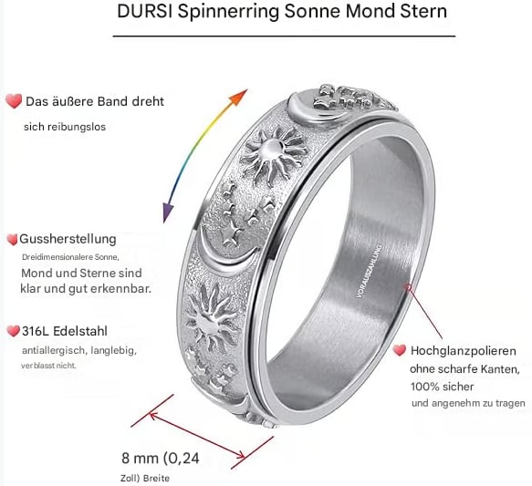 💕 Drehring mit Sonne, Mond und Sternen zur Linderung von Ängsten für Paare